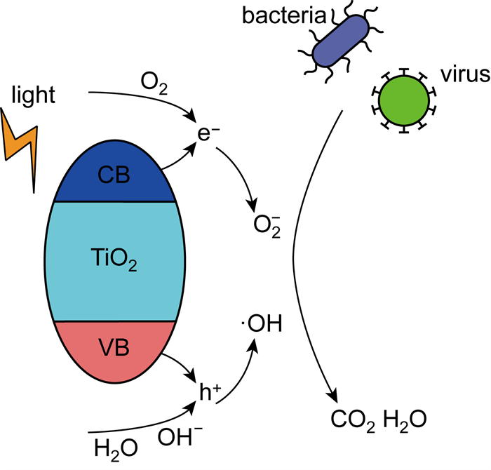 | 图 1 光催化空气消毒原理 Fig. 1 Photocatalytic air disinfection principle diagram |