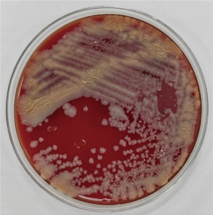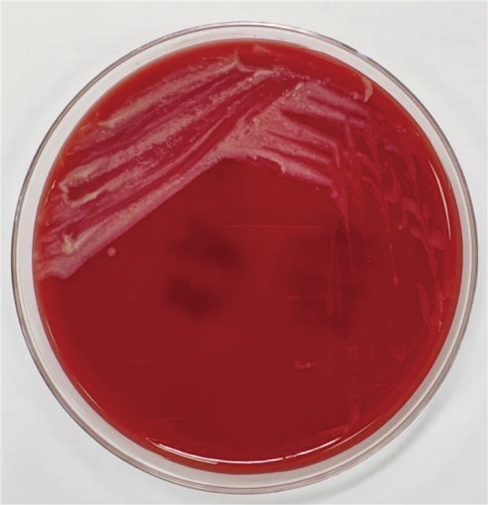 | 图 2 血琼脂培养基35 ℃培养48 h的菌落形态 Fig. 2 Morphology of colony cultured at 35 ℃ for 48 h in blood agar medium |