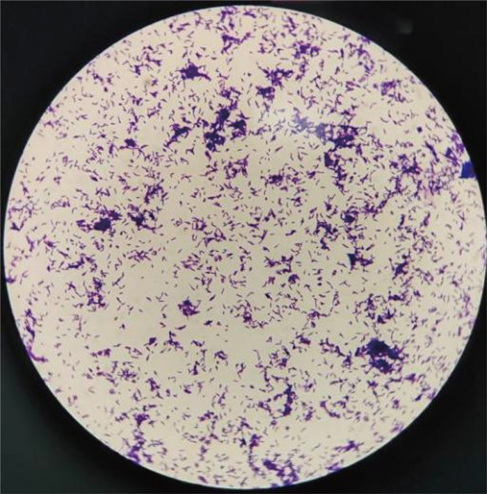 | 图 3 分离菌株革兰氏染色油镜下形态 Fig. 3 The morphology of the isolated strain under oil microscope |