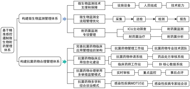 | 图 1 基于精准感控遏制微生物耐药管理体系的建立 Fig. 1 Establishment of management system for curbing antibiotic resistance based on precise infection control |
